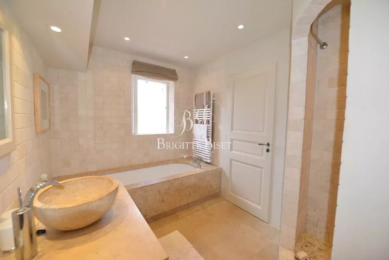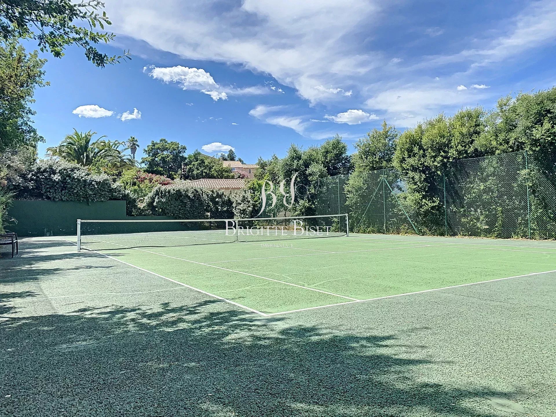 A vendre superbe villa vue mer à Sainte Maxime et magnifique vue sur les collines, proche plage à pied. Villa d'environ 310m² sur un terrain de 15.609m² dont 4000m² de jardin paysager avec son tennis privé, grande piscine au sel et chauffée de 13x6m et son jacuzzi. Belle pièce de vie traversante avec des grandes baies ouvrant d'un côté sur la vue mer et de l'autre sur la terrasse couverte ombragée avec une vue sublime sur les collines, salle de TV, cuisine indépendante, 7 chambres et 7 salle de douche/bains, un studio indépendant, garage, poolhouse avec sanitaire, buanderie et caves. Bel espace pelouse devant la piscine, au calme dans une résidence sécurisée. Chauffage au sol et climatisation réversible. La propriété se trouve absolument au calme. Juste magnifique.