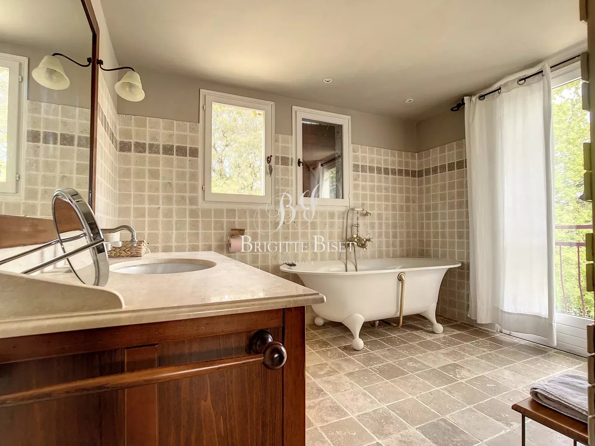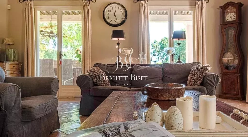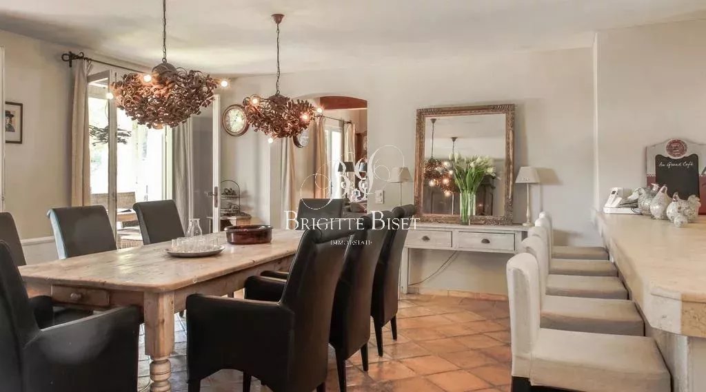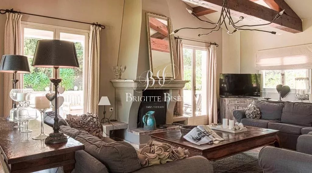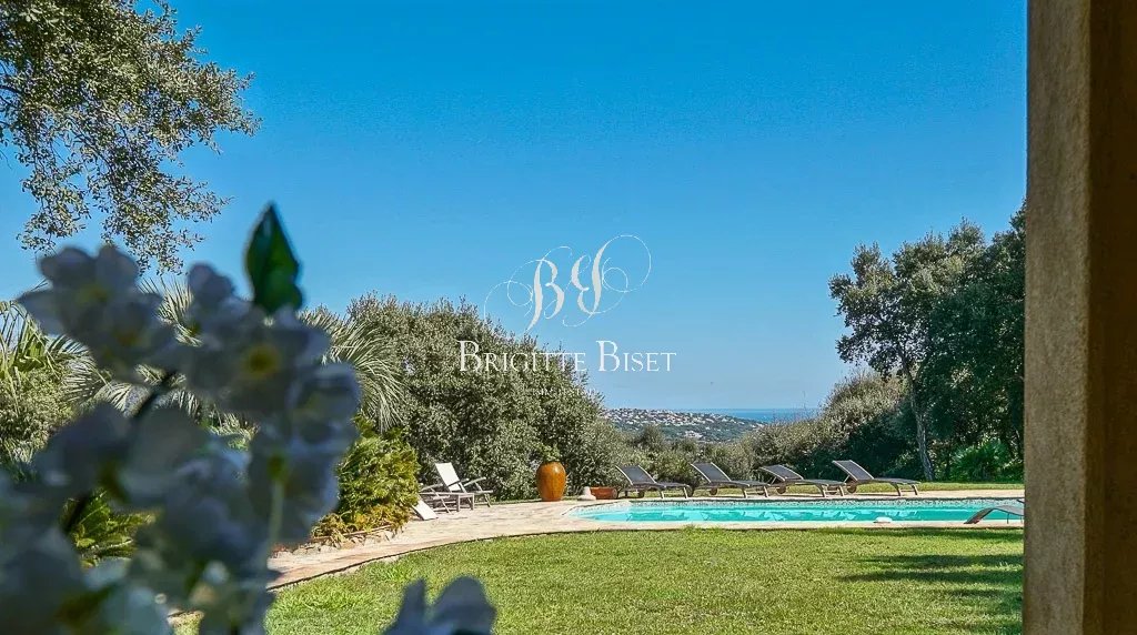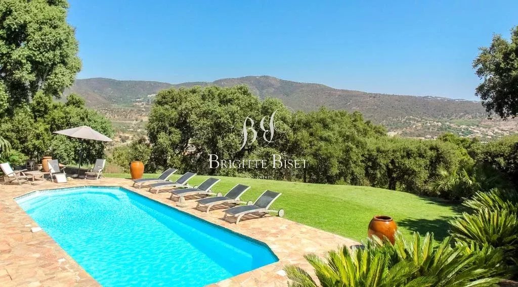 villa sous offre dans notre agence à Sainte Maxime, d'environ 320m² au calme dans la verdure, terrain de 10.000m² clos avec piscine chauffée de 12x4.5m, nombreuses terrasses, avec petite vue mer et belle vue sur les collines : Hall d'entrée, séjour avec cheminée, belle cuisine équipée, 6 chambres, 4 salles de bains, buanderie, cave, double garage. Pour amateurs de nature à 4 km de la Mer et 500m des commerces. Maison en excellent état, beaucoup de charme.