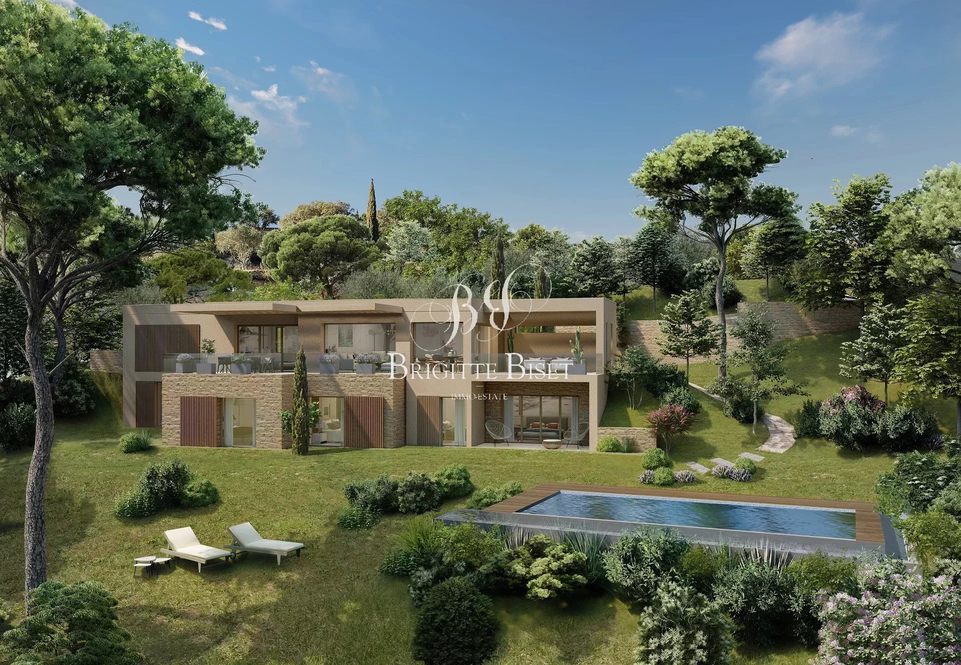 A vendre à Grimaud, villa neuve de 248m² sur terrain de 2 608m² située au calme dans un domaine fermé entre le village de Grimaud et Plan de la Tour!
