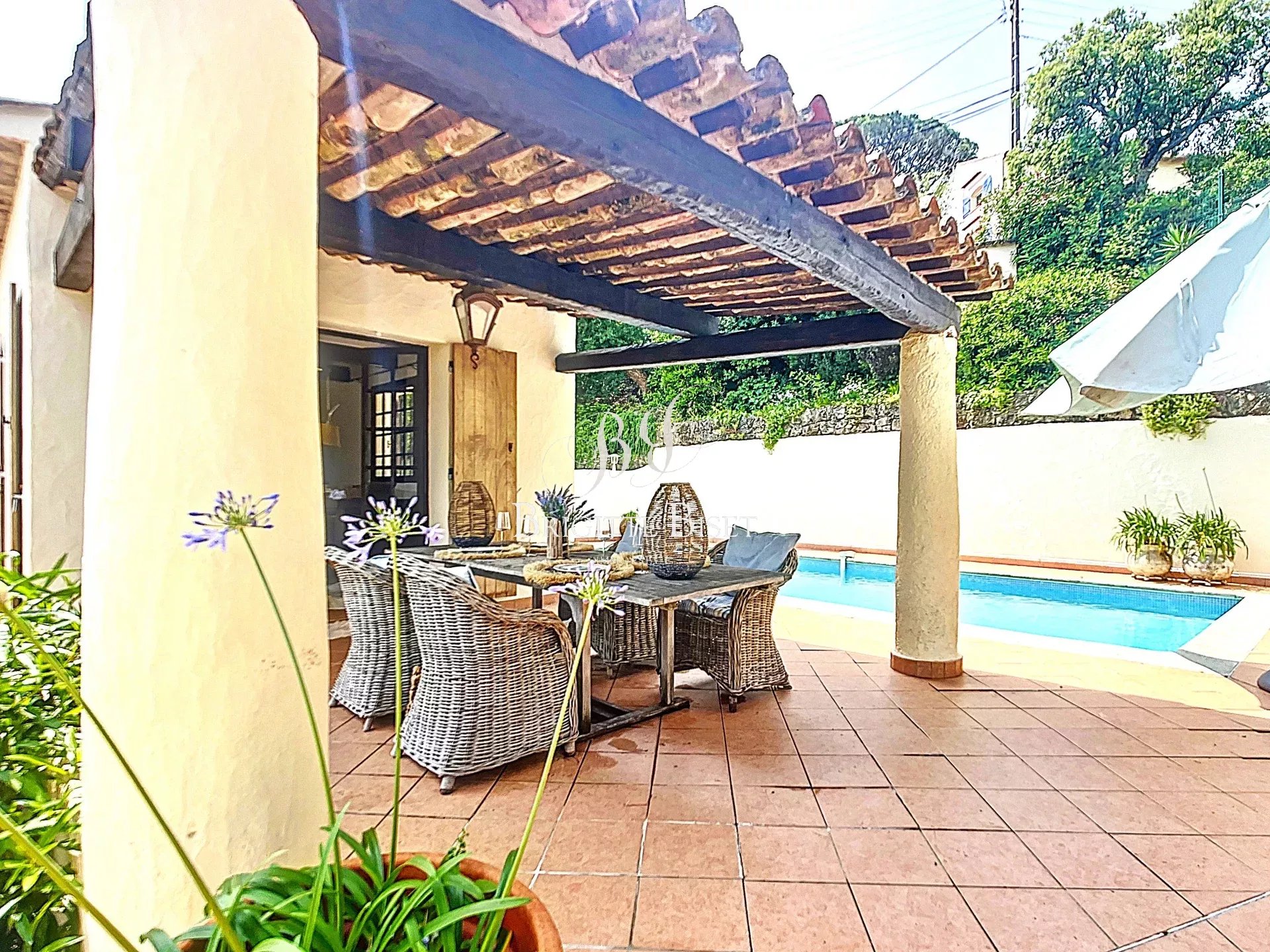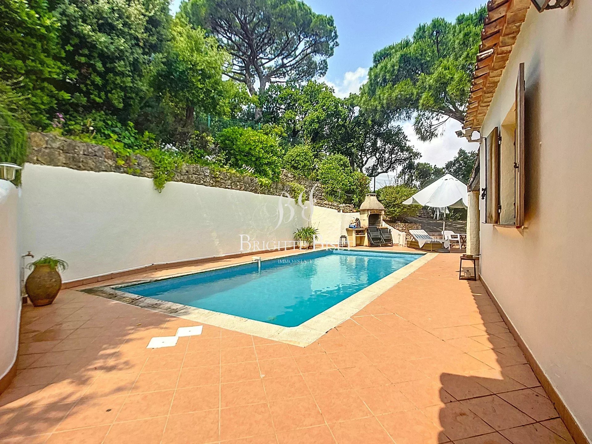 Villa à Sainte Maxime vendue dans notre agence, proche plage de la Nartelle à pied et proche du domaine du Golf. Maison provençale d'environ 166m² total un jardin de 1.485m² piscine de 9x4m et garage et caves. Cuisine moderne et salle à manger, séjour, 4 chambres, 2 salle de douches et 2 toilette. Climatisation réversible, vue dégagée sur la verdure. A rafraichir. Possibilité de créer une 5eme chambre avec douche. sous offre