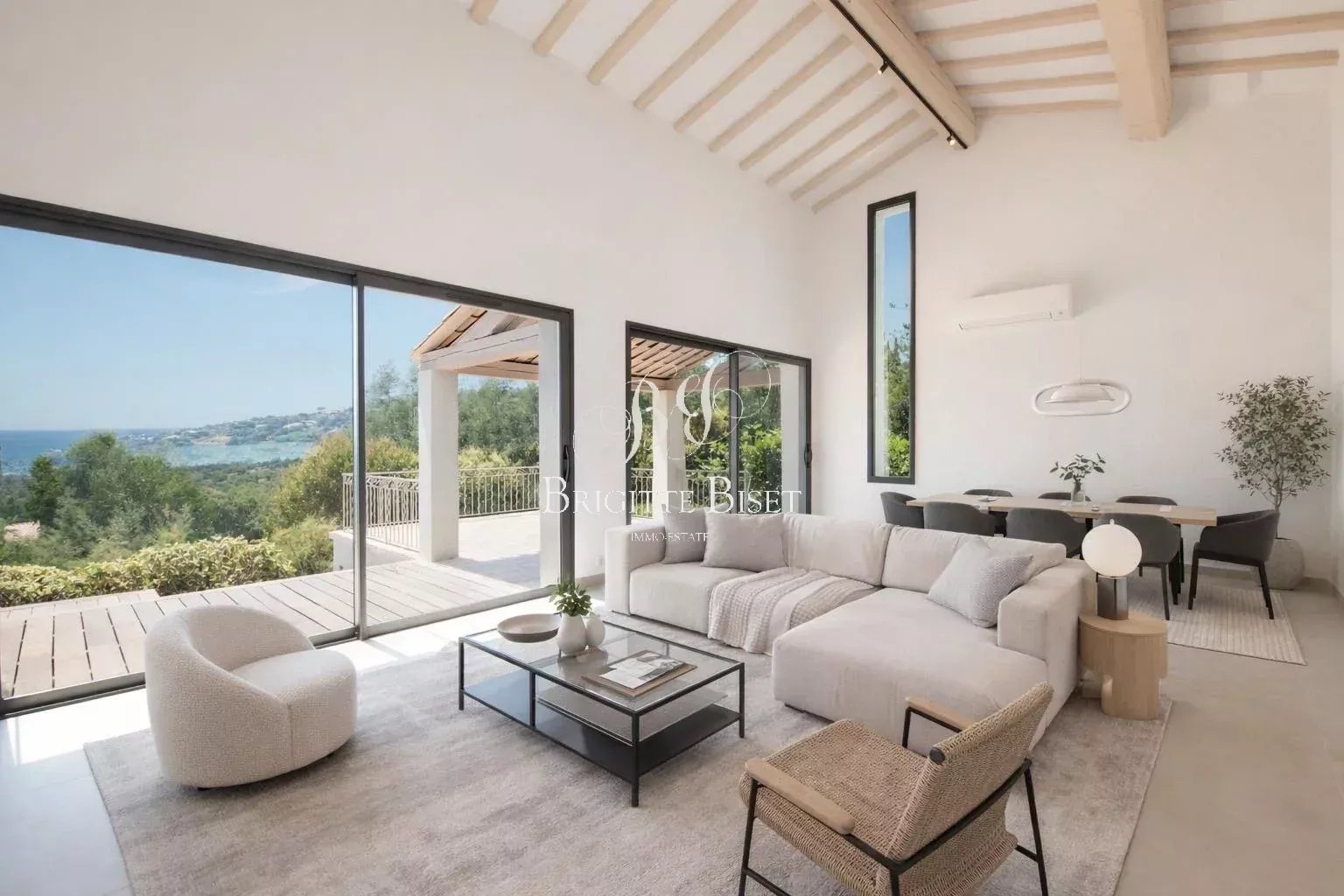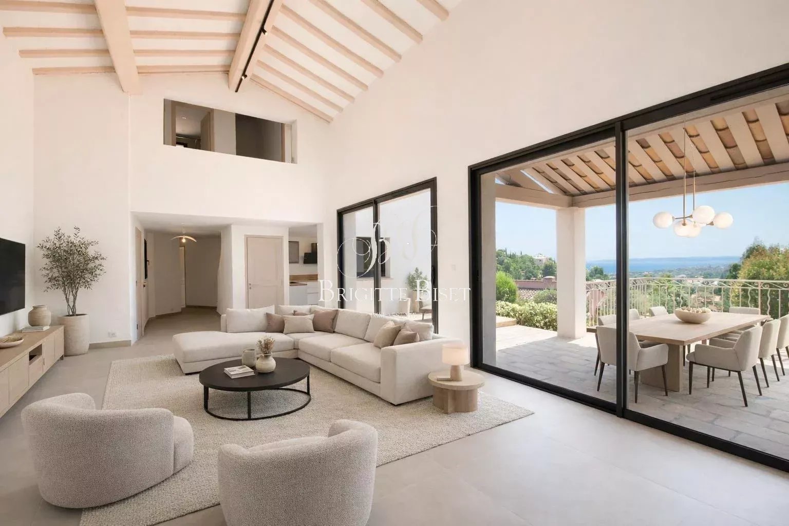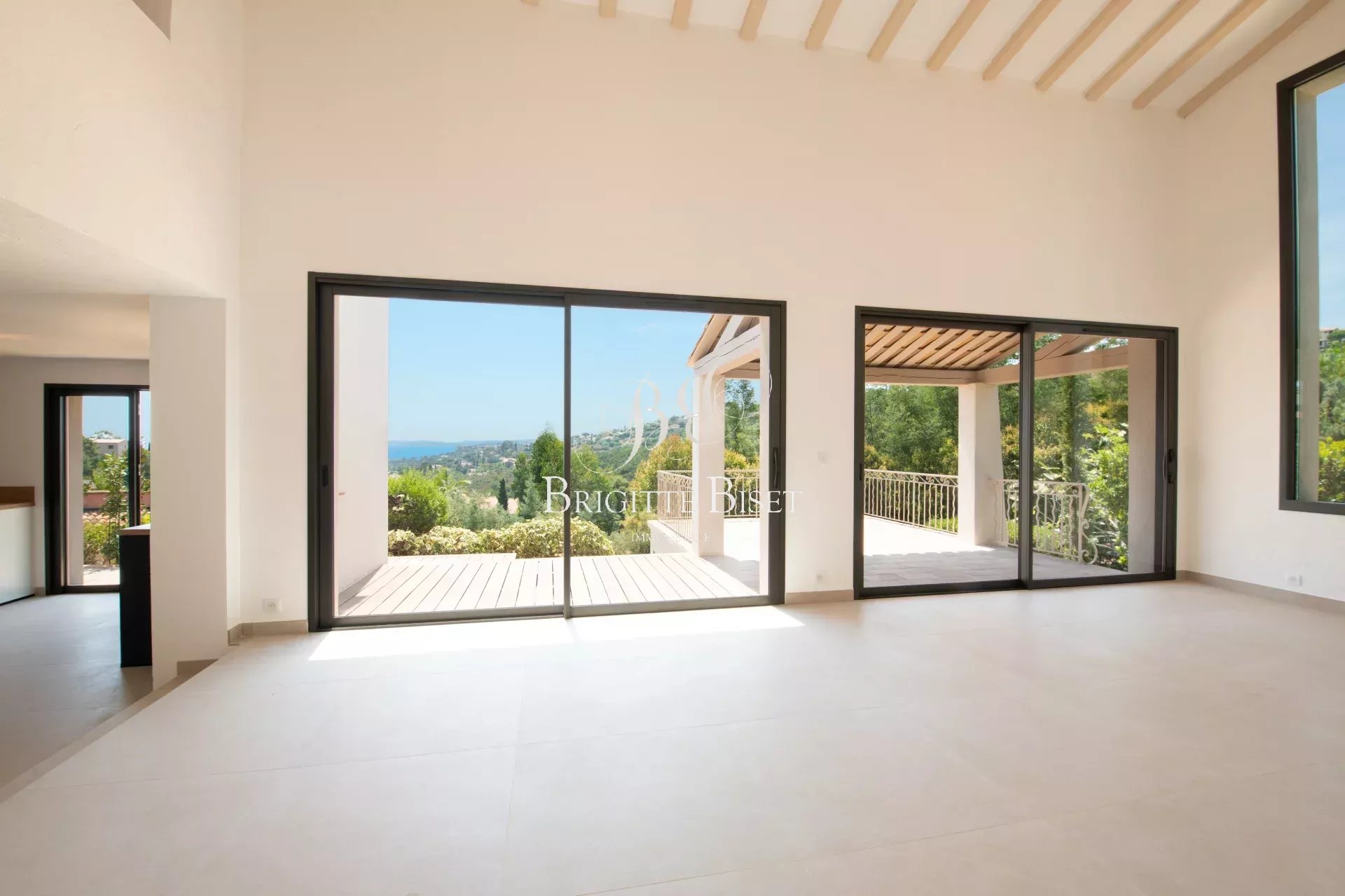 Cette belle villa de 135m² sur beau terrain clôturé de 1180m² vous propose une entrée, WC invités avec lave mains, séjour lumineux avec plafond cathédrale et ouvertures sur terrasse couverte et sa belle vue mer, belle cuisine équipée ouvrant sur terrasse, 4 chambres, 4 salles de douche dont 3 avec toilettes.