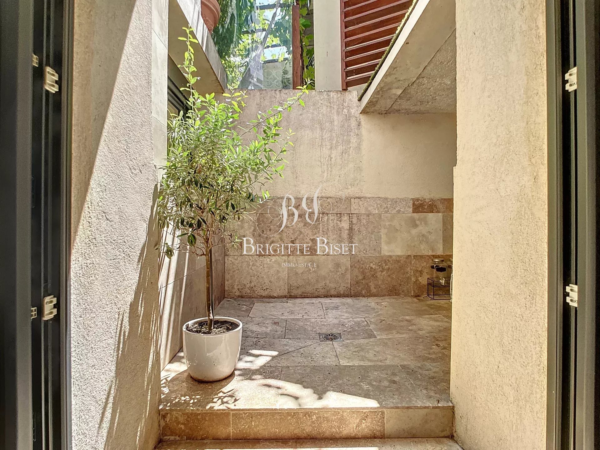 Il se compose d'un séjour avec belle cuisine ouverte toute équipée, 2 chambres dont une avec dressing, un WC séparé, une salle de douche avec douche à l'italienne et un patio intérieur.