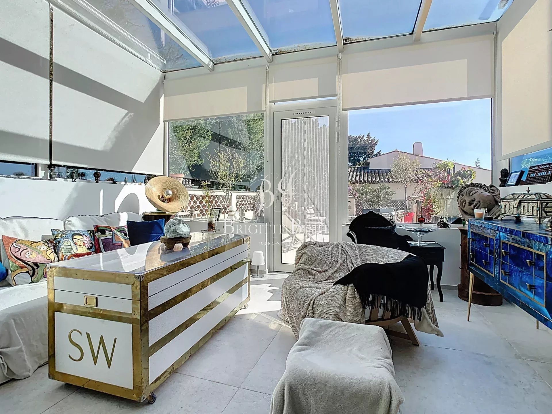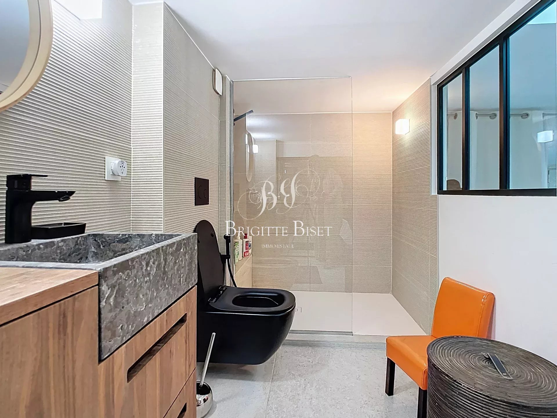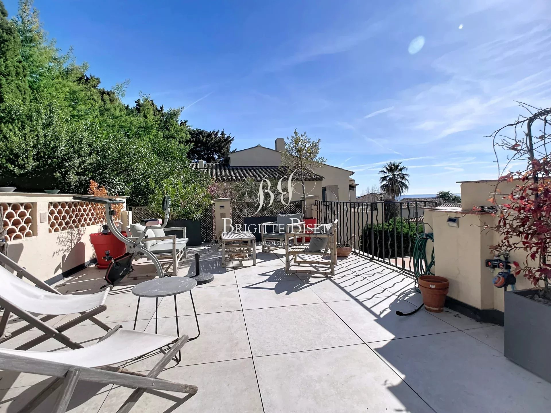 L'agence Brigitte Biset vous propose en Co Exclusivité un appartement duplex de 84m² de surface au sol, 48.89m² "loi Carrez" composé d'une entrée, séjour avec cuisine ouverte entièrement équipée, une magnifique pergola fermée de 15m² ouvrant sur une belle terrasse de 33m² Expo Est et sa belle vue mer, une chambre de plain-pied en suite avec sa salle de douche et un WC invités. A l'étage une suite parentale avec placards et sa salle de douche/WC.