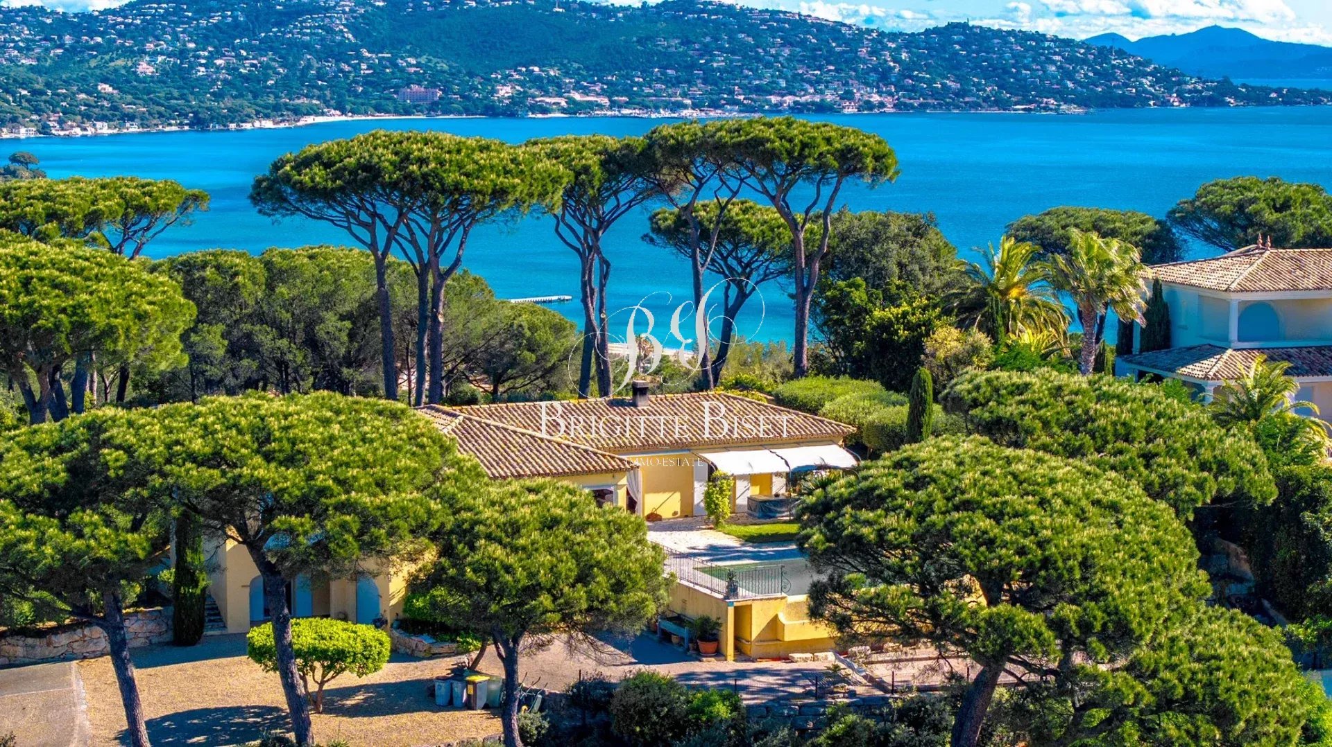 Villa a vendre à Sainte Maxime au Sémaphore avec une double vue mer magnifique imprenable 180°, vue mer vers Saint Tropez et de l'autre côté vers les montagnes de l'Esterel. Villa d'environ 230m² sur un terrain plat de 5489m², sa piscine à débordement au sel. La villa propose: Beau séjour traversant, salle à manger, cuisine, 4 chambres avec leur salle de bains/douche respectifs, bureau, buanderie, garage de 60m². Propriété exceptionnelle.
