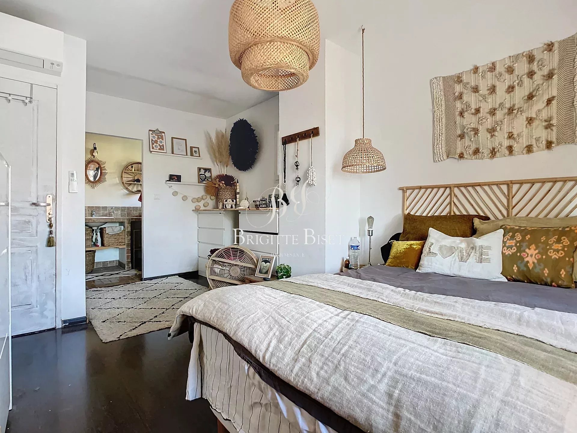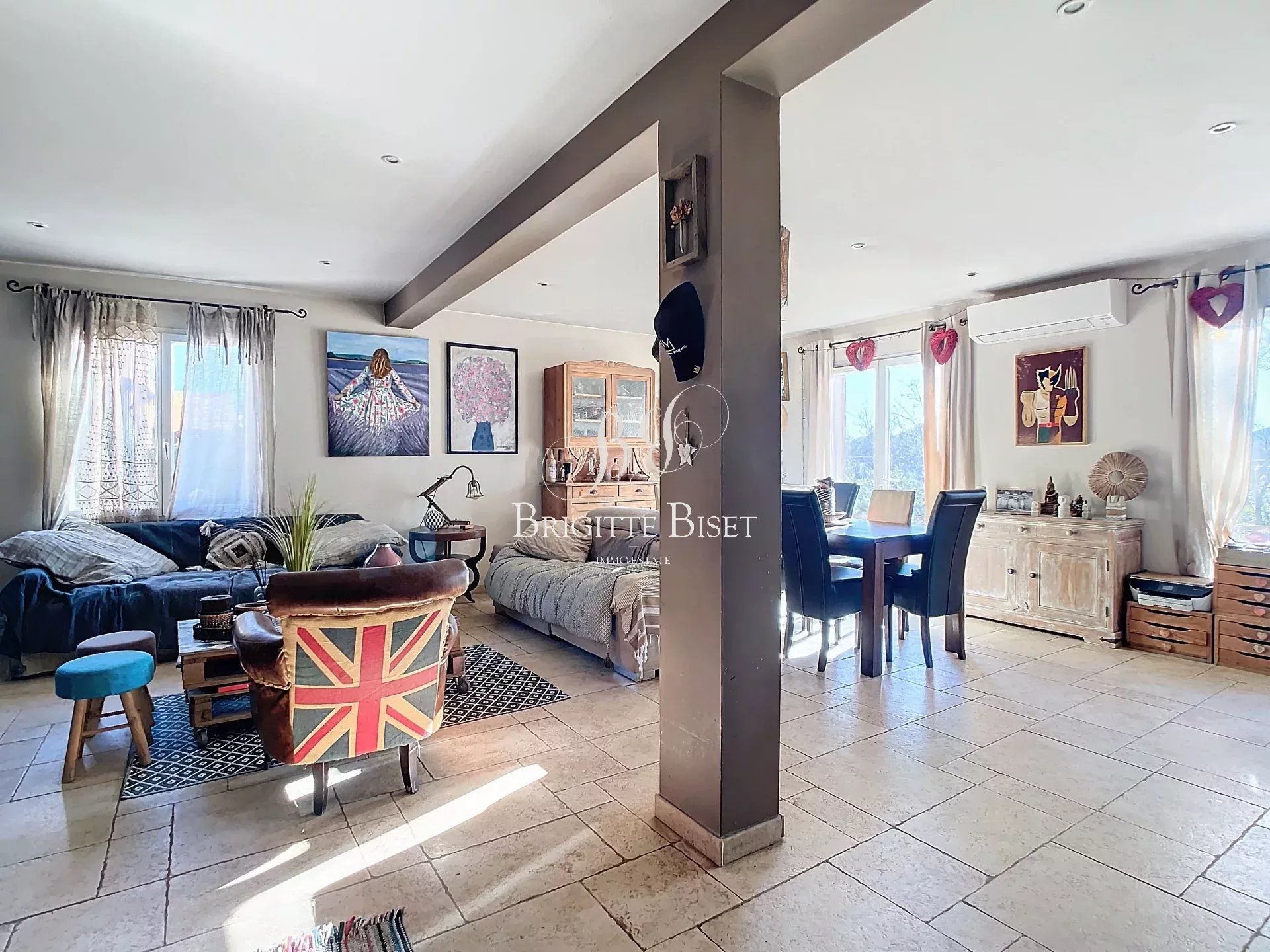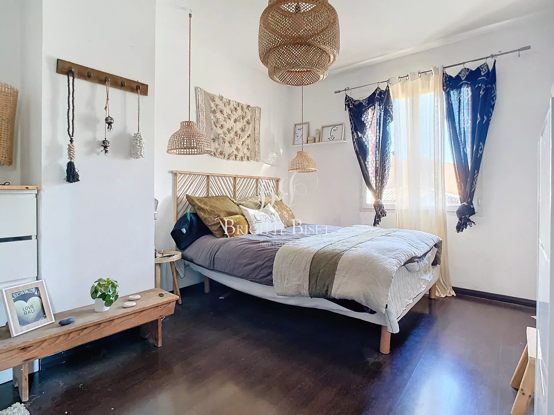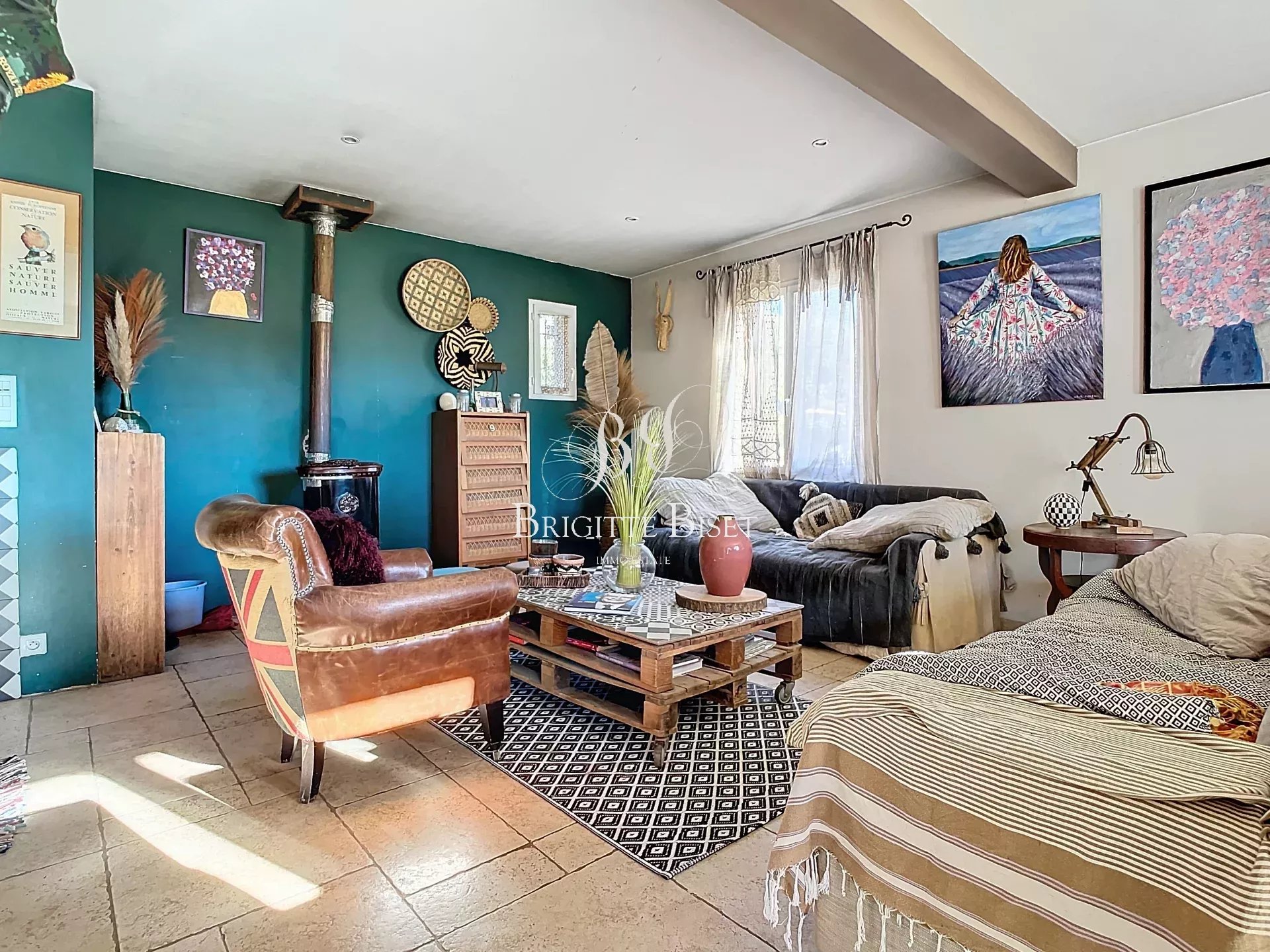 This very pretty house of 175m2 style "Bohème chic" on two levels offers entrance with closet, guest toilet and wash hands, living room/ lounge with wood stove Godin and reversible air conditioning, fully equipped kitchen and opening onto beautiful covered terrace, a Master bedroom with bathroom, shower, toilet and walk-in closet.